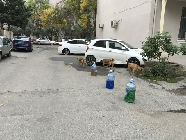 Şəkildəki itlər isə Bakıda Afiyəddin Cəlilov küçəsini dolaşır… Onlara sahib duran lazımdır. Hansı ki, bu ərazidə məktəb və uşaq bağçası var…