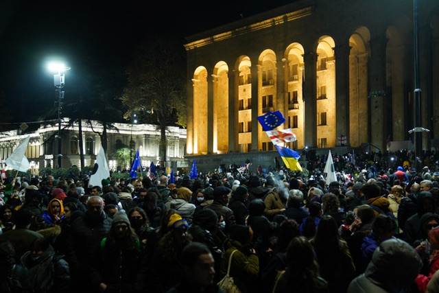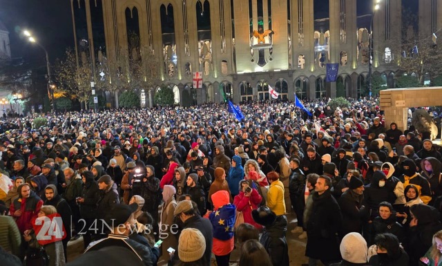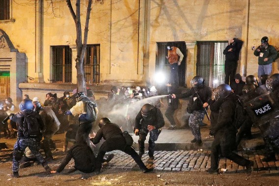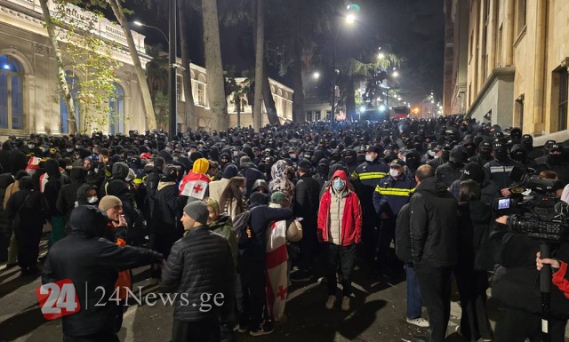 Ötən gecə Tbilisidə Polis qüvvələri gözyaşardıcı qazdan və su şırnağından istifadə edərək Rustaveli prospektini etirazçılardan təmizləsə də, lakin nümayişçilər Respublika meydanına toplaşıblar.