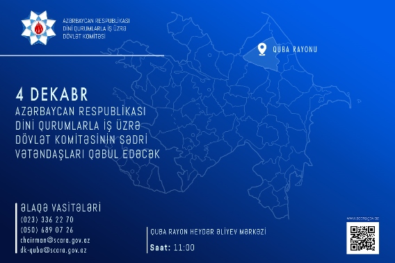 Dekabrın 4-də Dini Qurumlarla İş üzrə Dövlət Komitəsinin sədri Ramin Məmmədov Quba şəhərində yerləşən Hacı Cəfər, Cümə, “Ağ məscid”, Ərdəbil və Səkinəxanım məscidlərini ziyarət edib.