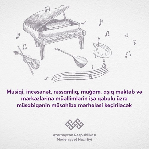 Azərbaycan Respublikası Mədəniyyət Nazirliyinin tabeliyindəki musiqi, incəsənət, rəssamlıq, muğam, aşıq məktəb və mərkəzlərinə müəllimlərin işə qəbulu üzrə müsabiqənin test mərhələsi 2024-cü ilin 2 iyun tarixində Dövlət İmtahan Mərkəzi ilə birgə keçirilmişdir.