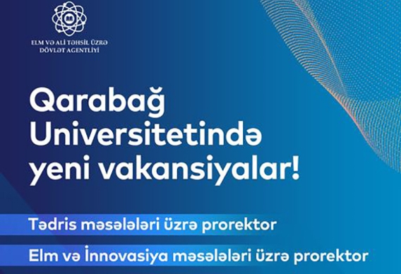 Qarabağ Universitetində tədris məsələləri üzrə prorektor və elm və innovasiya məsələləri üzrə prorektor vəzifələri üzrə vakansiyalar elan edilib.