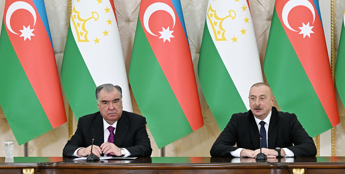 AZƏRBAYCAN VƏ TACİKİSTAN PREZİDENTLƏRİ MƏTBUATA BƏYANATLARLA ÇIXIŞ EDİBLƏR