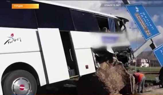 Dənizli vilayətindən Konyaya gedərkən avtobus minik avtomobili ilə toqquşub, yoldan kənara çıxıb və işarələri olan beton sütunu aşırıb.