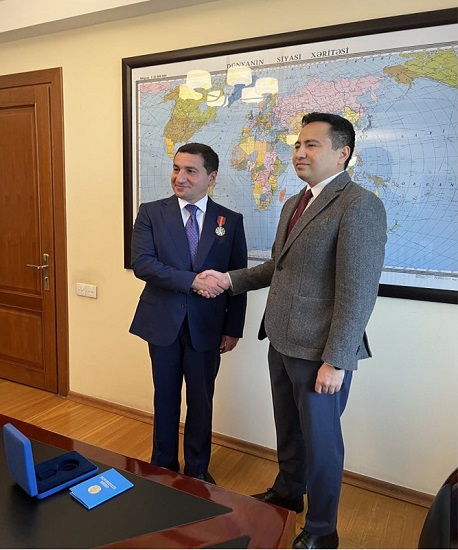 Qazaxıstanın Prezidenti Kasım-Jomart Tokayev Azərbaycan Prezidentinin Xarici Siyasət Məsələləri üzrə Köməkçisi Hikmət Hacıyevi II-ci dərəcəli “Dostık” (Dostluq) Ordeni ilə təltif edib.