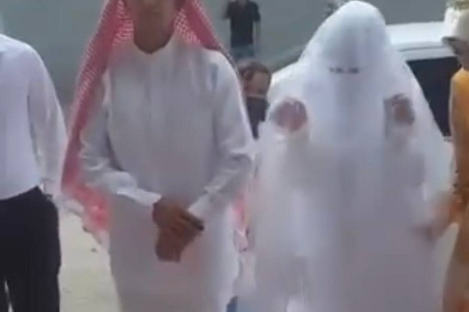 Sosial şəbəkələrdə bəyin ərəb paltarı geyindiyi, gəlinin isə üzünü niqabla bağladığı toydan video yayılıb. Mərasim zamanı dini musiqilər səsləndirilib.