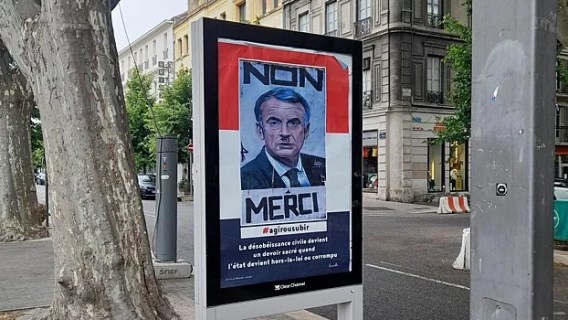 Fransanın cənubundakı Avinyon şəhərində naməlum şəxslər prezident Emmanuel Makronun Adolf Hitlerin formasında plakatlarını asıblar.