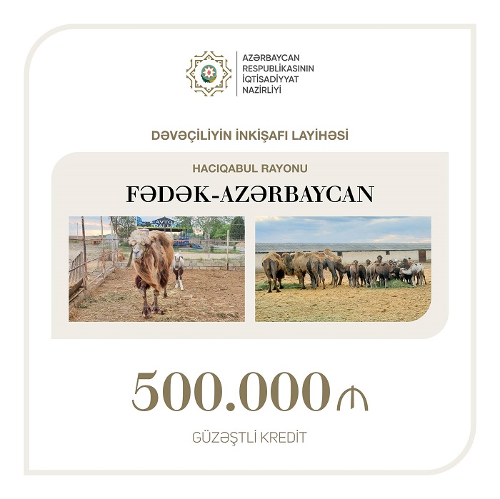 Sahibkarlığın İnkişafı Fondu tərəfindən Fədək-Azərbaycan MMC-yə Hacıqabul rayonunda dəvəçiliyin inkişafı layihəsi üçün 500 min manat güzəştli kredit verilib.