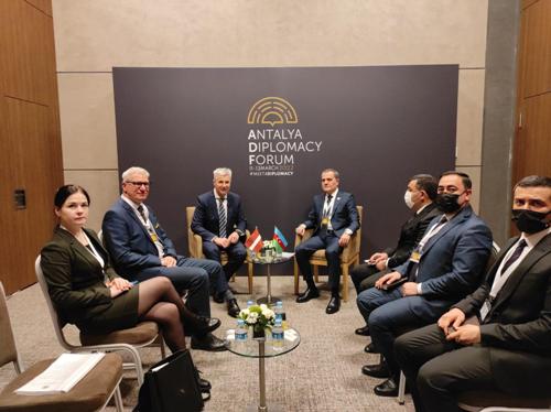 Azərbaycan Respublikasının xarici işlər naziri Ceyhun Bayramov Antalya Diplomatiya Forumunda iştirakı çərçivəsində Latviya Respublikasının Baş nazirin müavini, müdafiə naziri Artis Pabriks ilə görüşüb.