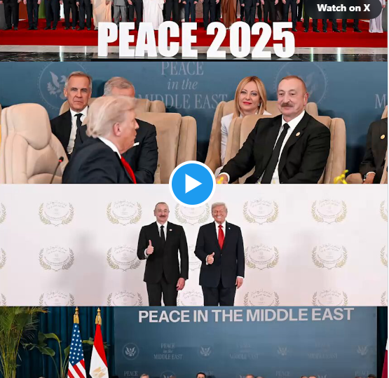 Azərbaycan Prezidenti İlham Əliyev Amerika Birləşmiş Ştatlarının Prezidenti Donald Trampın və Misir Ərəb Respublikasının Prezidenti Əbdülfəttah əs-Sisinin dəvəti ilə Şarm əl-Şeyx şəhərində təşkil edilən Yaxın Şərq Sülh Sammitində iştirak edir. Azərbaycan sammitə dəvət edilən 25 ölkə siyahısındadır. ABŞ və Misir Prezidentləri ilə birlikdə 27 dövlətin lideri sammitdə iştirak edəcək.