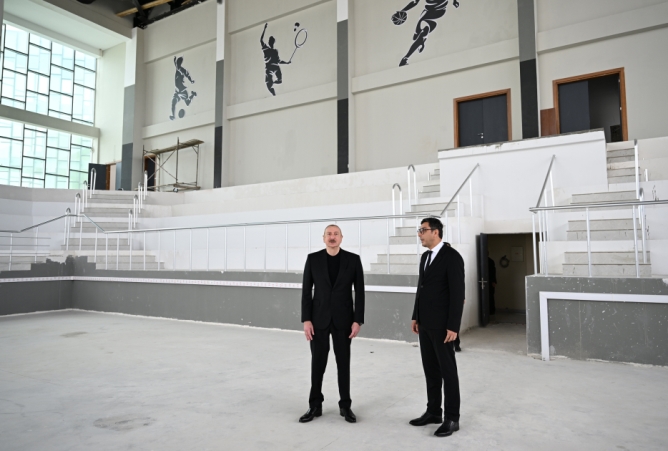 Prezident Yevlax Olimpiya İdman Kompleksində görülmüş işlərlə tanış olub