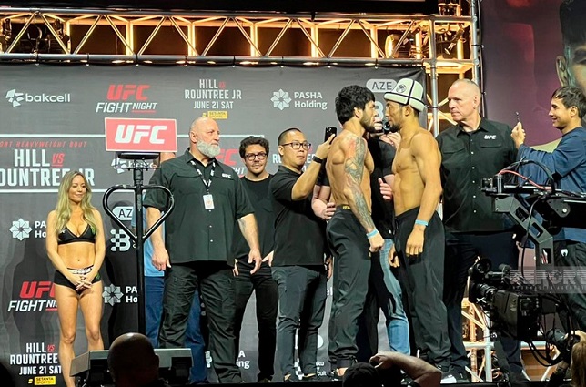 Bu gün Mütləq Döyüş Çempionatının (UFC) Azərbaycanda keçiriləcək turnirindən əvvəl MMA idmançıları rəqibləri ilə üz-üzə gəliblər. Tezadlar.az Gənclər və İdman Nazirliyinə istinadla bildirir ki, tədbir yarışın keçiriləcəyi Bakı Kristal Zalında baş tutub. Bundan əlavə, idmançılar son olaraq çəkidən də keçiblər. Hansı ki,“UFC Fight Night” yarışı sabah-iyunun 21-də baş tutacaq.