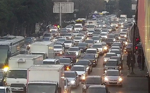 Bakıda bir sıra yollarında nəqliyyat sıxlığı müşahidə olunur