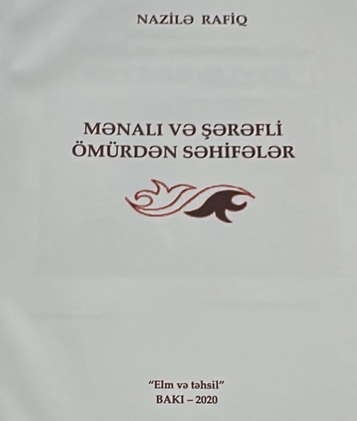 Xatırladıram ki, dəyərli qələm sahibi, “Respublika Gəncləri” qəzetinin və “Gənclik news” jurnalının baş redaktoru, “Qızıl qələm” mükafatçısı Nazilə Rafiqin “Mənalı və şərəfli ömürdən səhifələr” kitabı xüsusilə diqqəti cəlb edir. Kitab 1990-cı illərin əvvələrində, ölkənin ictimai-siyasi həyatında fəal iştirak edən, siyasi mübarizənin önündə dayanan, Ulu öndər Heydər Əliyevin rəhbərliyi altında çalışmış, Yeni Azərbaycan Partiyasının Ordubad rayonunda formalaşmasında mühüm rol oynamış, Ordubad Raryon İcra hakimiyyətinin başçısı işləmiş, dəyərli ziyalı Mehrac Əliyevə həsr olunub.
