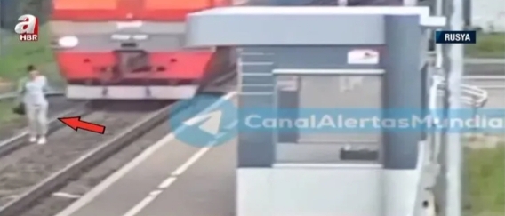 Rusiyada dəhşətli hadisə baş verib. Qadın relslə gedərkən arxadan gələn qatarın fərqinə varmayıb.