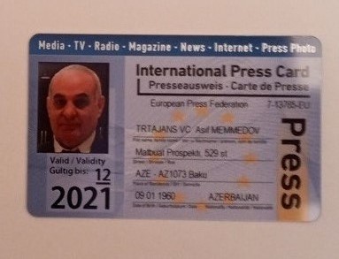 Avropa Jurnalistlər Federasiyasının üzvü (Vəsiqəmin surətini də təqdim edirəm)