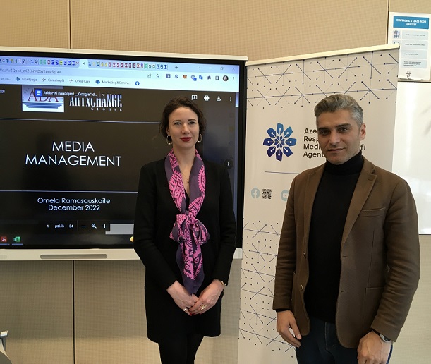Medianın İnkişafı Agentliyinin təşkilatçılığı və Azərbaycan Diplomatiya Akademiyasının (ADA) dəstəyi və birgə əməkdaşlığı ilə ADA-da ölkənin çap, elektron və vizual (TV və radio) media orqanları rəhbərlərinin iştirakı ilə təlimlərə start verilmişdi. Beləliklə, ADA-nın Təlim mərkəzində media biznesi və beynəlxalq təcrübə mövzusu ətrafında Litvadan dəvət edilmiş beynəlxalq statuslu ekspert Ornela Ramasauskaite-nin iştirakı ilə təlimlər keçirildi. Təbii ki, Azərbaycan mediasında bu sahədə yetərincə təcrübə vardır. Lakin beynəlxalq təcrübədən bəhrələnərək yerli media mühitində bundan istifadə olunması xüsusilə vacibdir, bunun müsbət bəhrəsini son bir neçə ildə görməkdəyik.