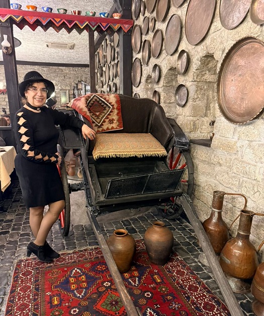 Elə bu unudulmaz gecədə də məkanın tarixindən söhbət açıldı və qonağımız Sebahat xanım restoranın müxtəlif guşələri ilə tanış oldu. Görüşün maraqlı məqamlarından biri isə Əməkdar incəsənət xadimi Fəxriyyə Xələfovanın Sebahat Adalara butalı ipək kəlağayı hədiyyə etməsi oldu. Məlumdur ki, Fəxriyyə Xələfova qədim tarixə malik kəlağayımıza həmişə dəyər verib və geyim kolleksiyalarında istifadə edərək onu təbliğ edib.