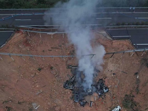 Hadisə çərşənbə günü gecə Meizhou şəhərində meydana gəlib, 18 nəqliyyat vasitəsi yoldan çıxaraq böyük bir çuxura düşüb. Çin mediası tərəfindən yayımlanan görüntülərdə çevrilmə nəticəsində bəzi avtomobillərin alovlandığı görünür. Yolun dağılmış hissəsinin uzunluğu təqribən 18 m, sahəsi isə 184 kvadratmetrə yaxındır.